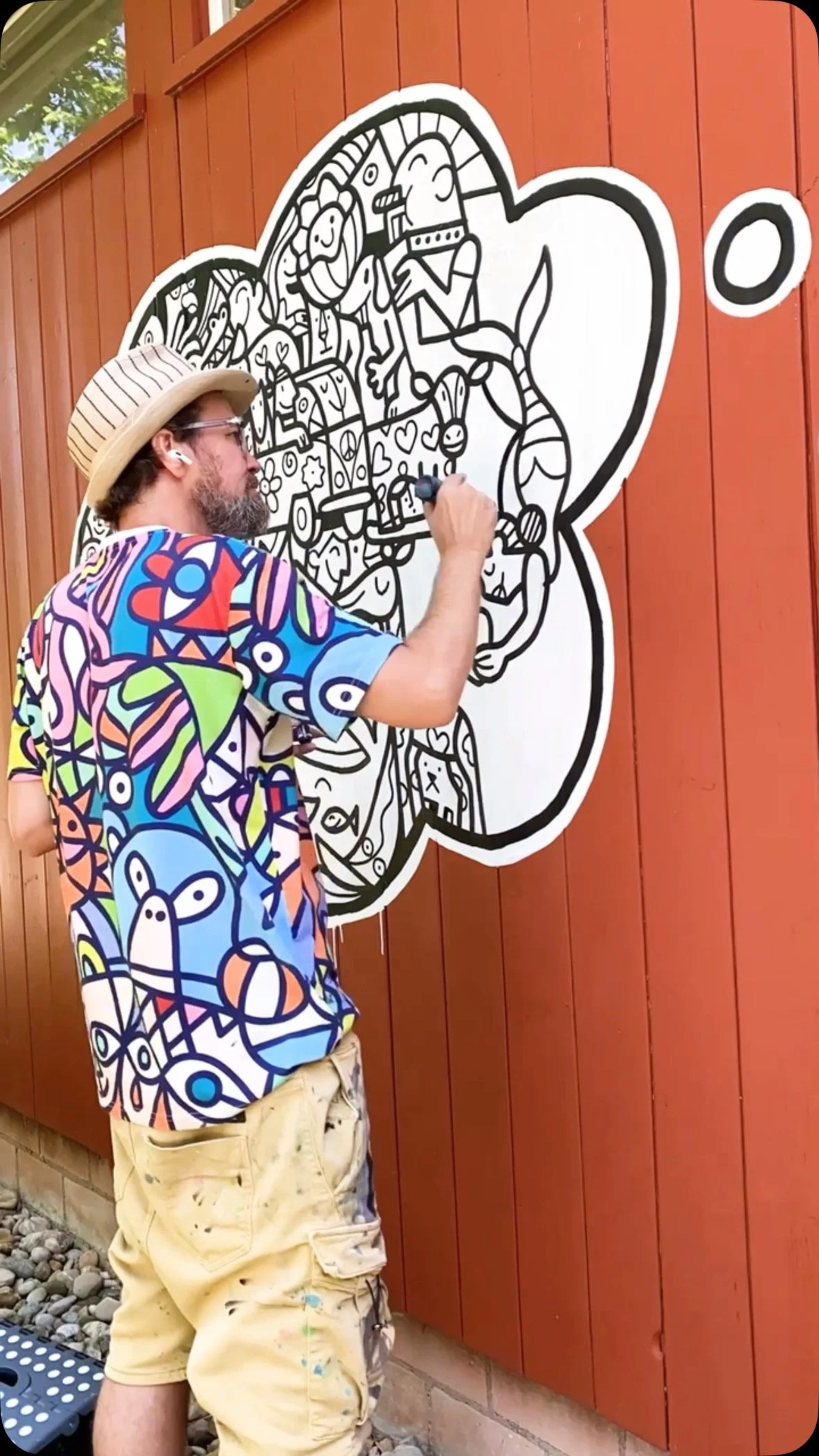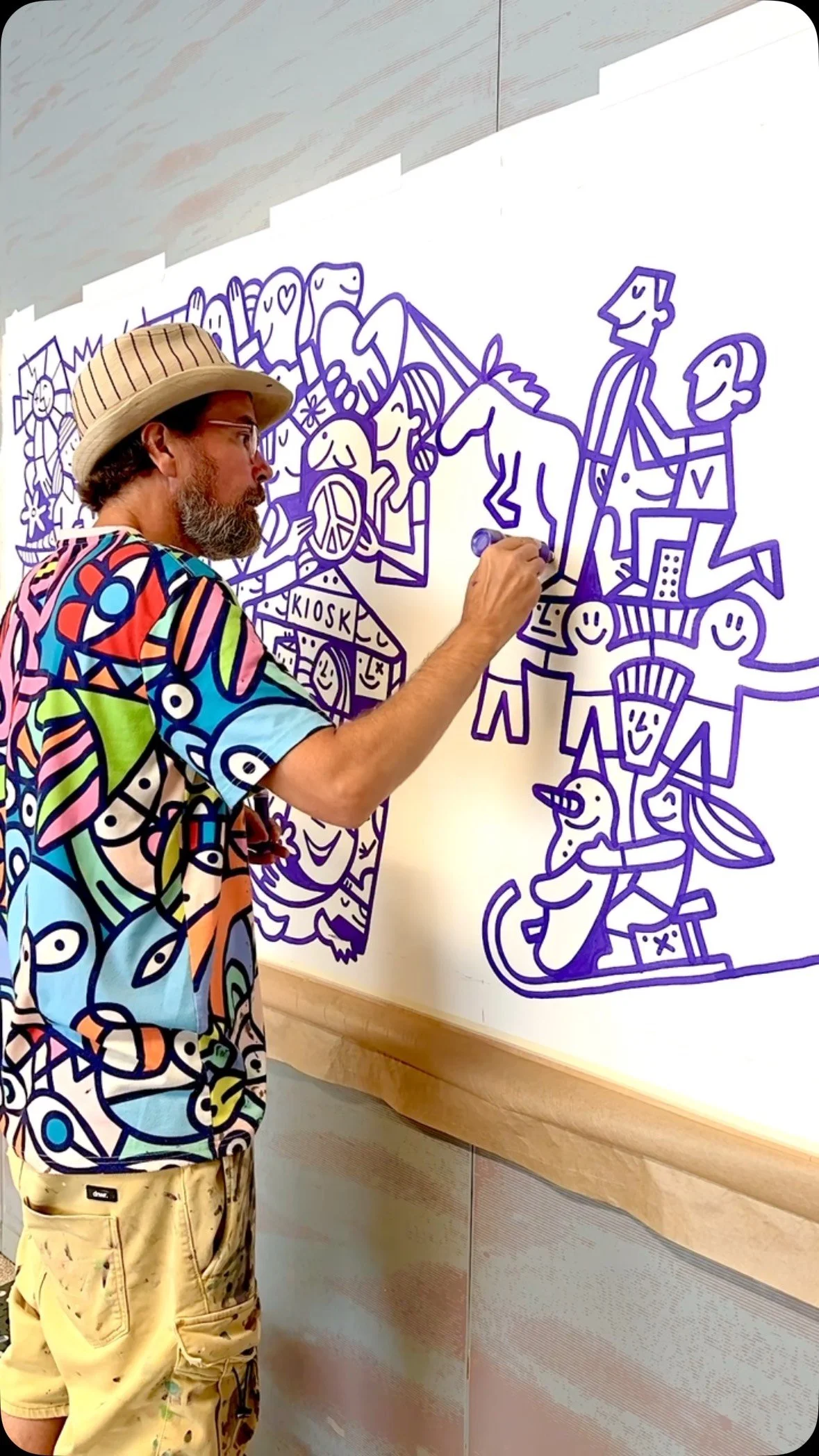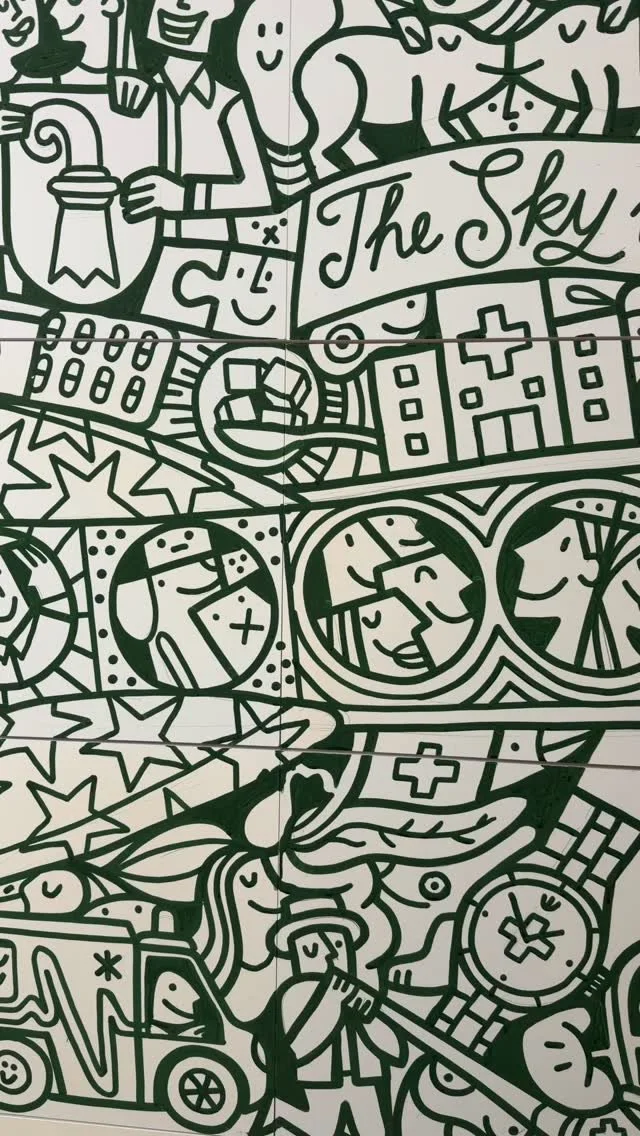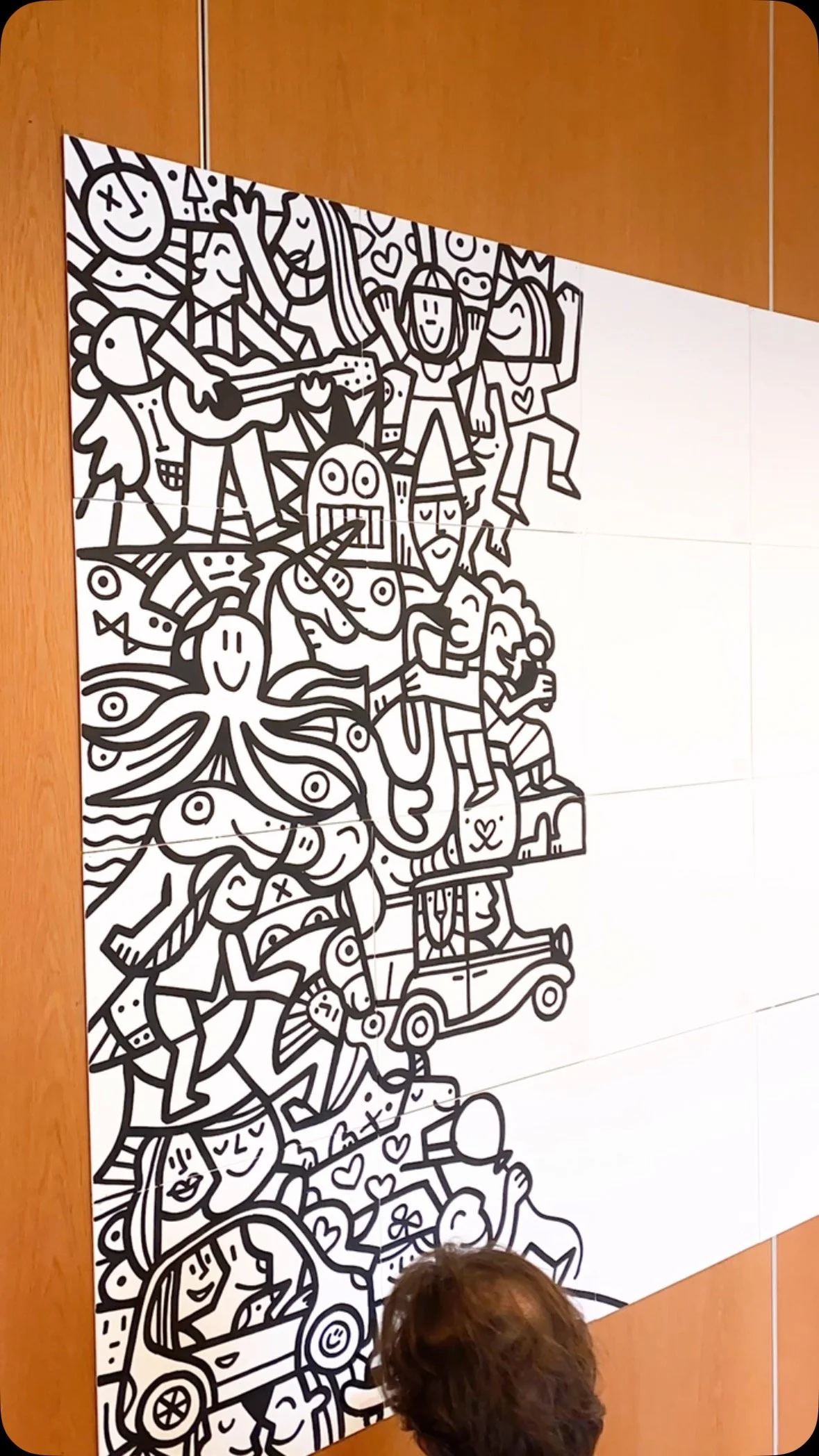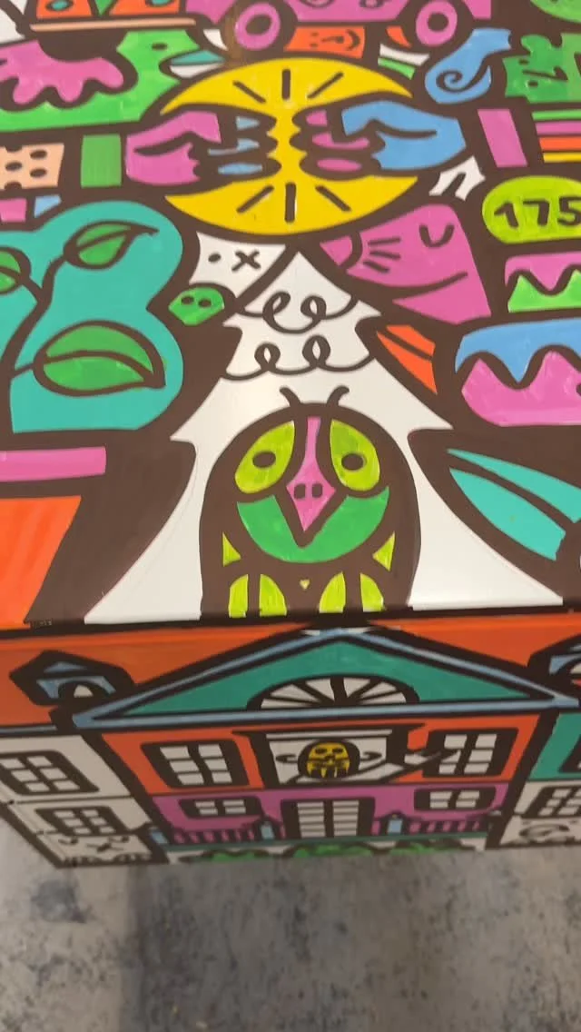 Fredinko is an artist, cartoonist and advertiser. He published his first cartoon at the age of 14. Since then, he has been fascinated by outlines and deadlines. In addition to his later work as an advertiser, he developed his style as an artist, which, according to his own statement, lies “between Pop Art and Neo-Cubism”. It arose from a father-son conflict of an artistic nature: the father, an architect of the old Bauhaus school, ordered to work with strict geometric shapes. Fredinko, a rebel by nature, fought back with an organic and free design language. The result is the combination of both, whereby the old conflict between chaos and strict order is sometimes more, sometimes less noticeable in his works. The Swiss with German-Hungarian-Slovakian roots became known through his live performances, where he decorates large screens with his unique drawings and lets the audience color in. Fredinko lives with his family in Adliswil, where he also runs his studio.