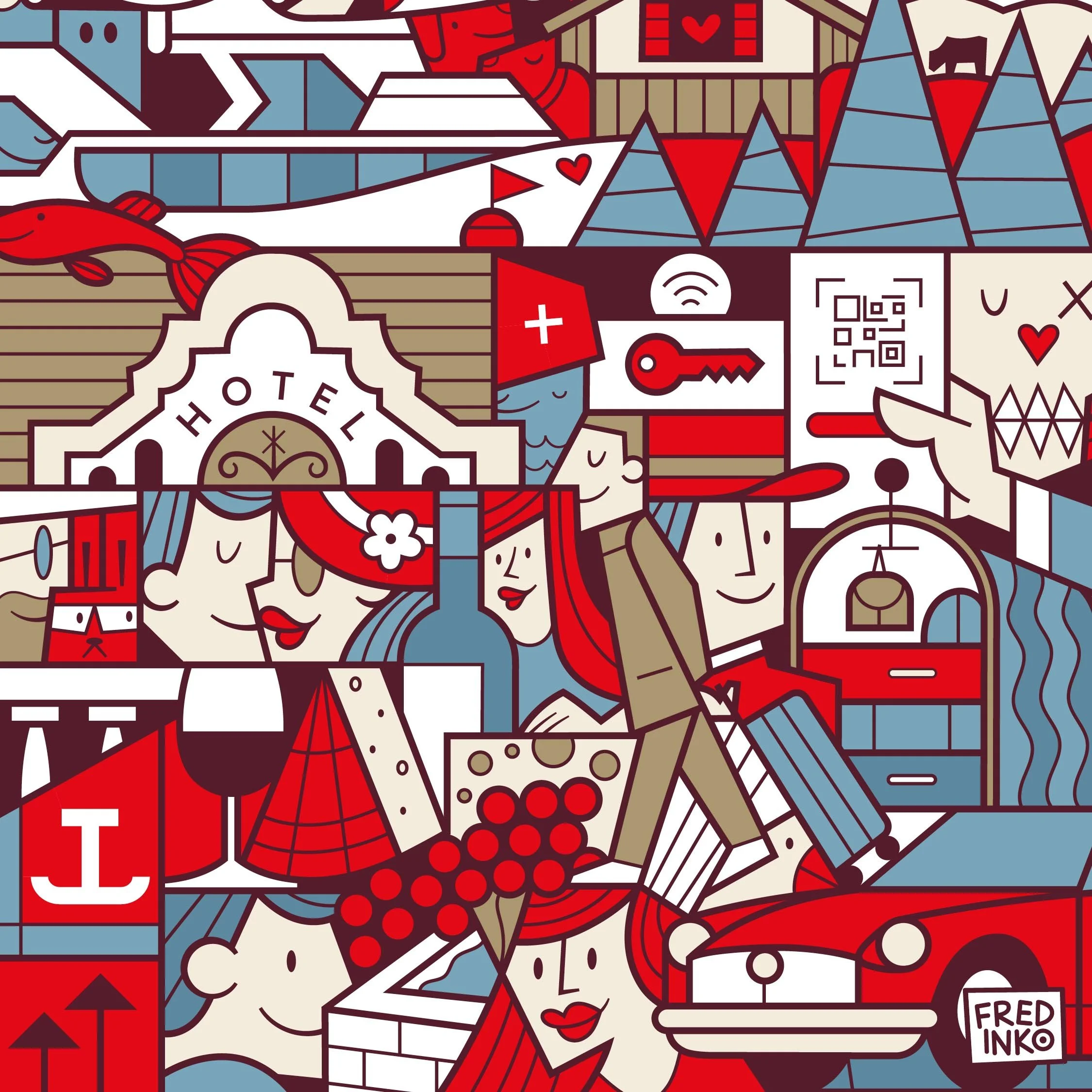 Ein «Fredinko» wandert aus: Zum Grand Opening des neuen Firmengebäudes von simatec in Charlotte, North Carolina durfte ich ein Bild erschaffen, welches die schweizer und amerikanische Kultur verschmilzt, so entdeckt man etwa Hashtag#Helvetia und die Hashtag#StatueofLiberty als beste Freundinnen. Beim Ausmalen des Bildes wurde ich tatkräftig von den Mitarbeitenden der Simatec in Wangen an der Aare unterstützt. Von da aus reiste der «Fredinko» nach Amerika zur Geschenkübergabe und schmückt heute die neuen Räumlichkeiten.